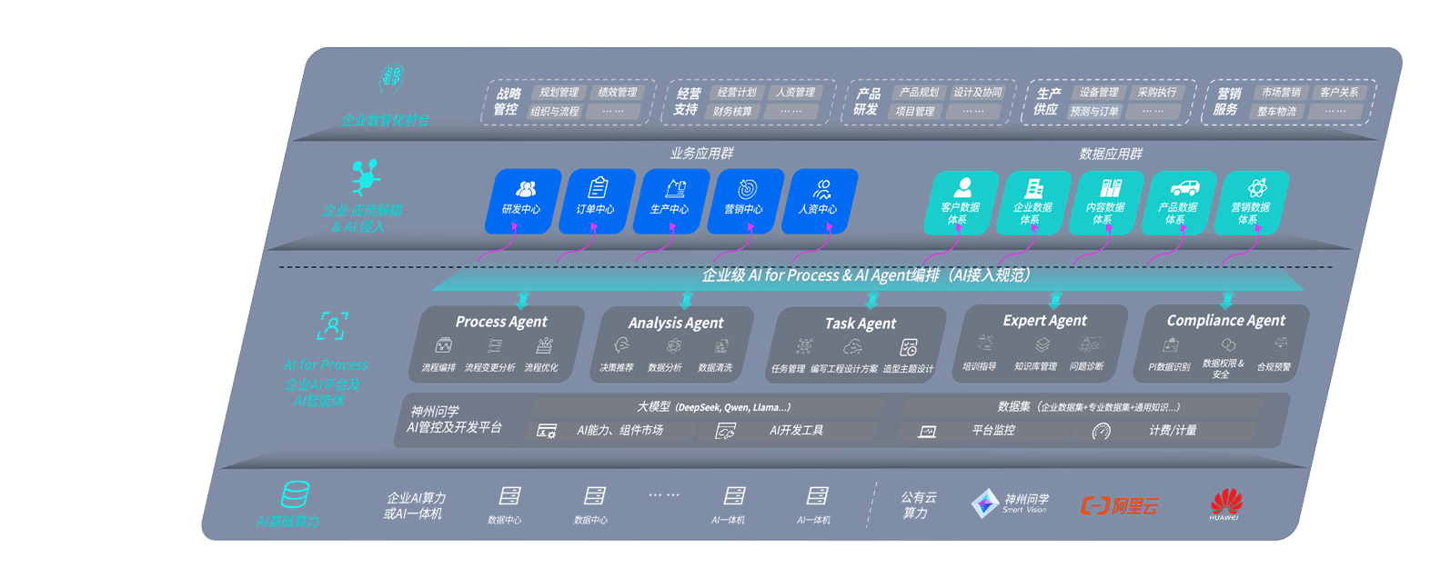 极悦平台问学智车解决方案是一套基于AI技术的汽车行业智能化系统,,,,覆盖从底层算力到顶层AI应用的全栈方案。。。。方案由算力层、、、模型层和应用层组成:算力层,,方案支持多种一体机配置,,,具备云端灵活部署、、多云适配以及动态优化计算资源的能力;模型层,,,,极悦平台问学平台版提供了企业级AI应用一站式构建与管理平台,,,,支持基于后训练强化技术的汽车企业专属模型的训练、、、评测和运营;应用层,,极悦平台问学DeepSeek版提供包括超级员工、、、智能招采、、、智能营销、、、智能客服、、、AI for BI等一系列解决方案,,,可助力汽车行业实现数字化转型,,,让管理更智能、、响应更敏捷。。。。