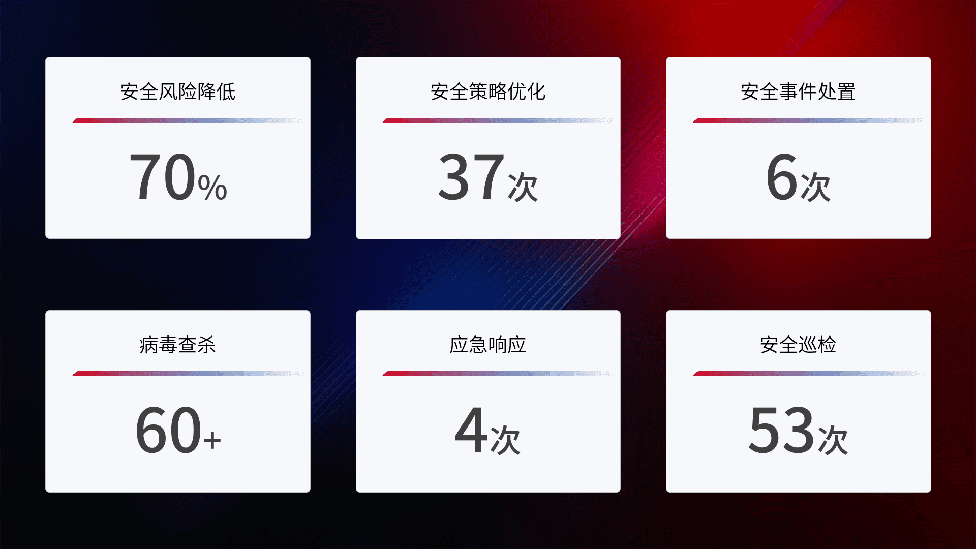 提供全面的安全事件报告体系,,,,包括处置报告、、、周报、、、季度和年度总结,,,,结合持续监控,,,帮助客户深入了解网络安全状况。。。。